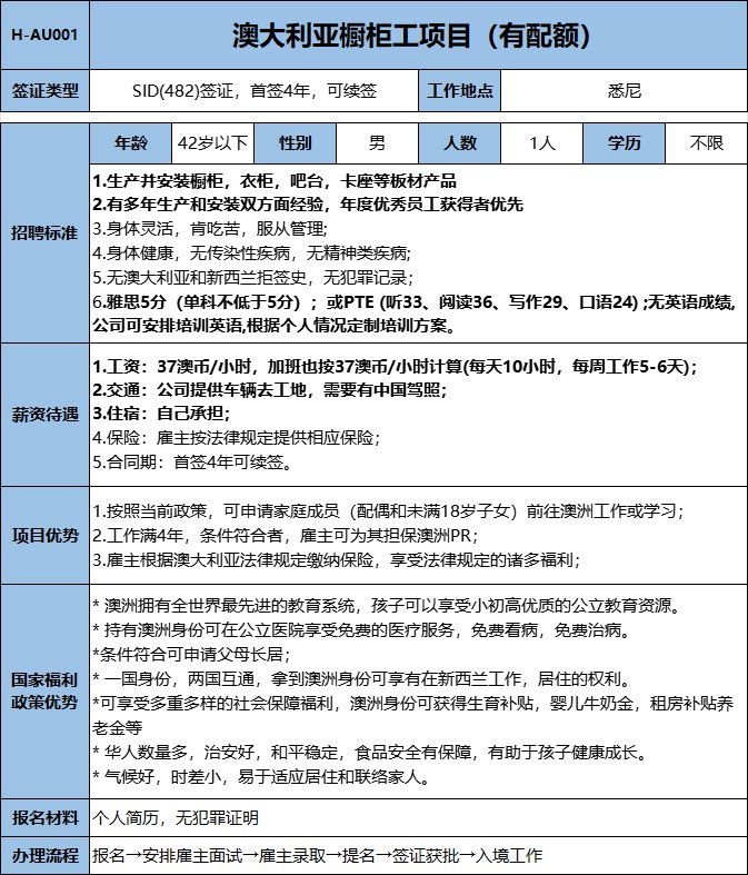 要求安裝櫥柜,1年以上相關(guān)工作經(jīng)驗;年薪73150澳幣;
