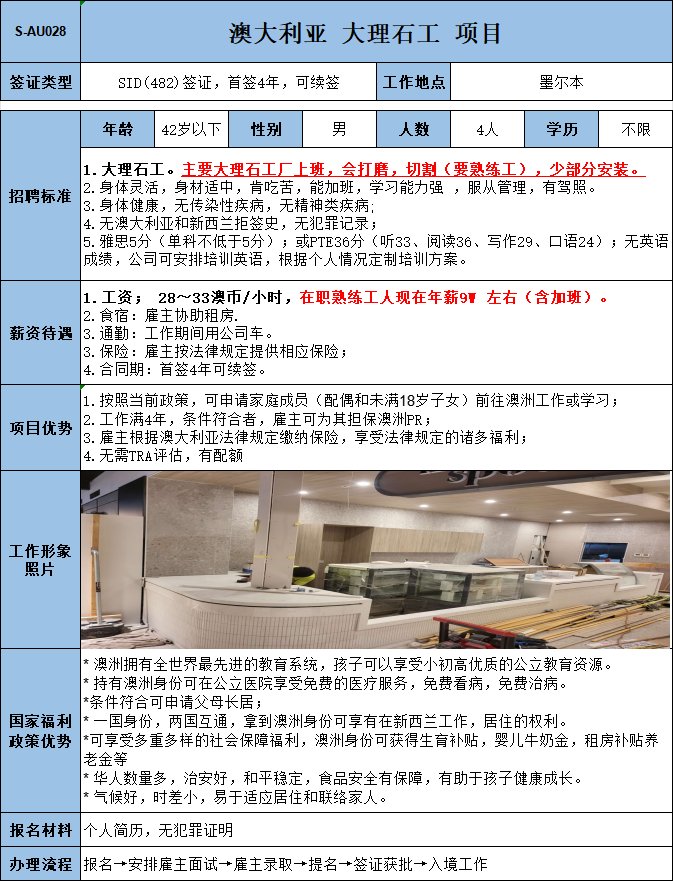 實力內(nèi)裝公司,主營業(yè)務(wù)瓷磚鋪貼,已獲雇主擔(dān)保資格!年薪73150澳幣,多勞多得,工資漲薪潛力極大