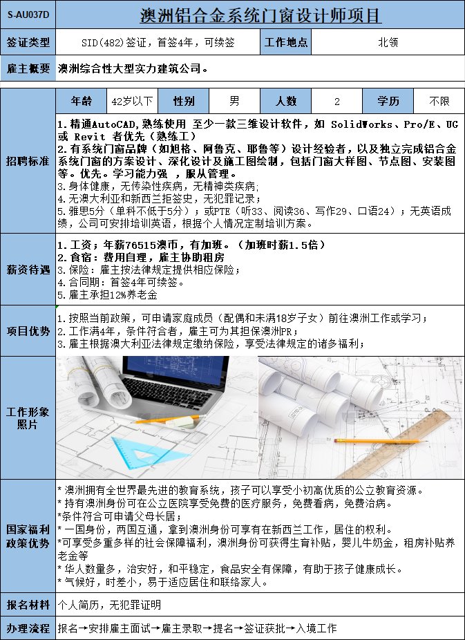 鋁合金門窗安裝2人;稅前38澳幣/小時(shí),8個(gè)小時(shí)之外算加班 (按照法律規(guī)定)現(xiàn)在職工人稅前2400澳幣/周(含加班)