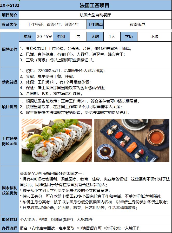 有后廚經(jīng)驗(yàn)或有相關(guān)餐飲經(jīng)驗(yàn)優(yōu)先,不會者可培訓(xùn);包吃住,稅后:1900歐元/月,后期根據(jù)個人情況漲薪。