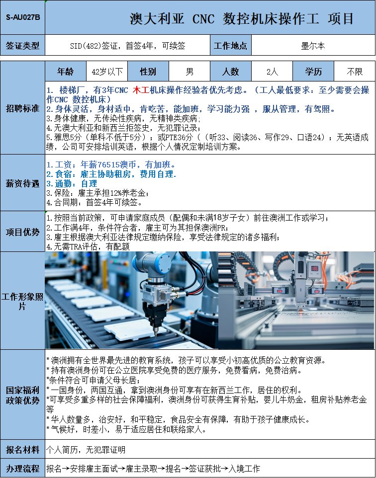 赴澳大利亞(墨爾本)- CNC 數(shù)控機(jī)床操作工