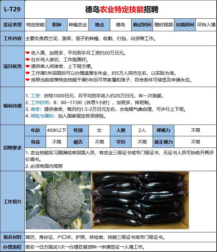 主要養(yǎng)雞、喂料、打掃雞舍等,平均到手工資18萬日元左右,公司報銷5萬日元赴日機票,據個人表現有獎金,宿舍費用低。