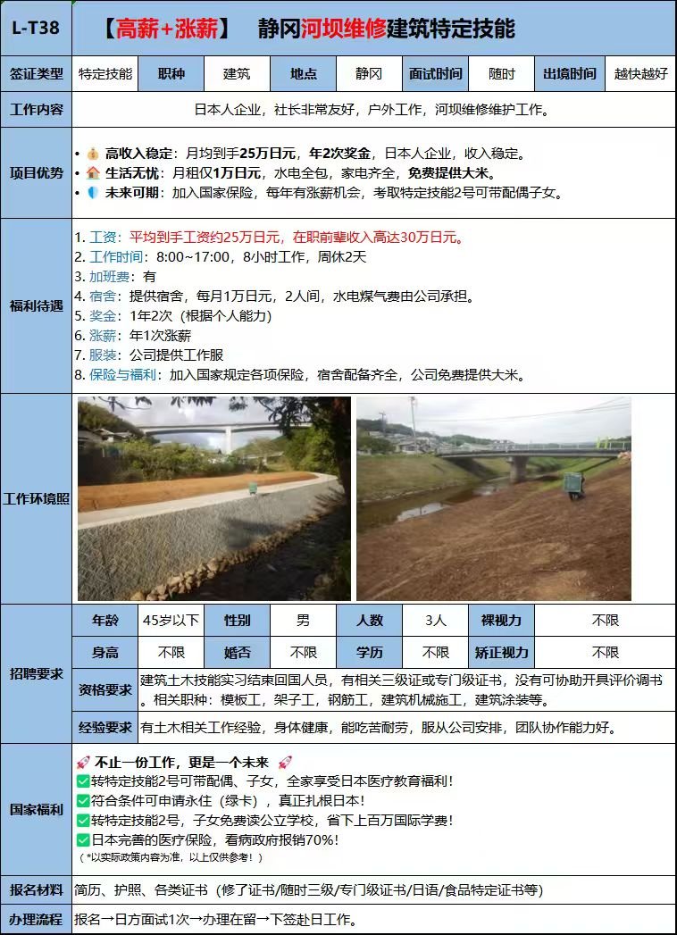 日本人企業(yè),社長(zhǎng)非常友好,戶外工作,河壩維修維護(hù)工作。
